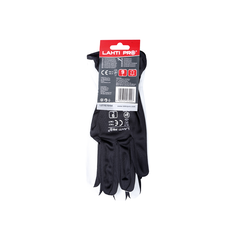 Materiał: skóra kozia, bawełna, spandex. Wykonanie części chwytnej z jednego kawałka skóry zwiększa trwałość rękawicy. Wierzchnia część rękawicy wykonana jest z elastycznego materiału i zapewnia idealne dopasowanie do dłoni. Szeroki zakres zastosowań (np. motoryzacja, rekreacja, ogrodnictwo, prace magazynowe). Posiadają certyfikat CE oraz spełniają normę: EN 388 - rękawice chroniące przed zagrożeniami mechanicznymi, EN 420 – rękawice ochronne.