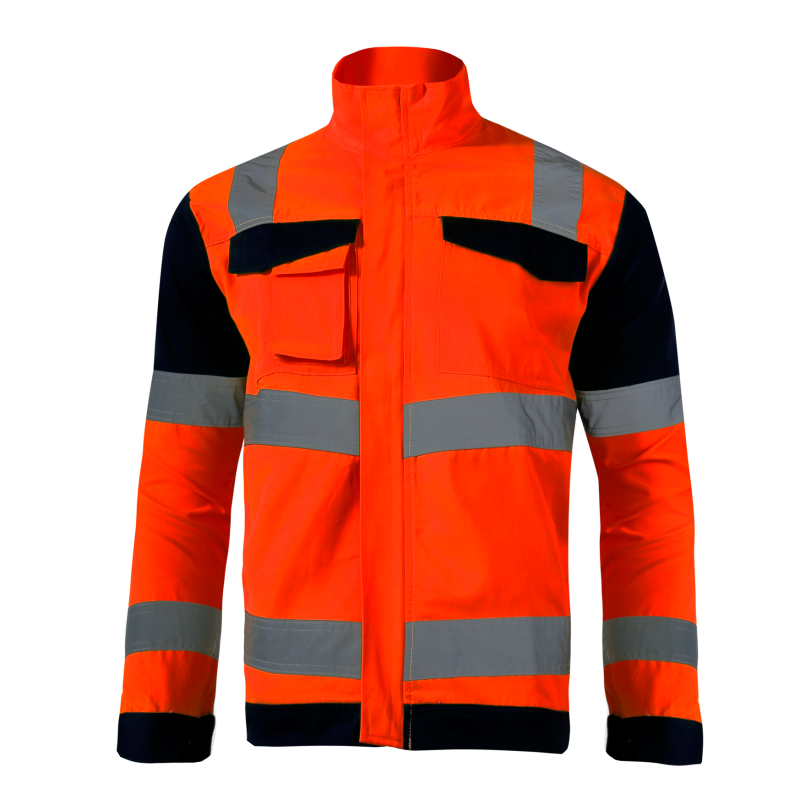 Kurtka robocza wykonana z najwyższej jakości materiałów 60% bawełny oraz 40% poliestru o gramaturze 270g/m2. Idealnie nadaje się do prac budowlanych, remontowych w ciepłe dni. Pasy odblaskowe wykonane zgodnie z najwyższą normą EN ISO 20471. Wysoka 2 (druga) klasa widzialności. Podwójne szwy oraz zamek błyskawiczny. Mankiety zapinane na napy z możliwością regulacji. Regulacja szerokości u dołu kurtki za pomocą nap. Napy pokryte tworzywem chroniącym przed kontaktem z wodą. Kurtka wyposażona jest w 7 kieszeni, w tym 3 zapinane na rzep, kieszeń na telefon komórkowy oraz wszywkę identyfikacyjną. Odzież posiada certyfikat CE oraz normę EN ISO 13688.
