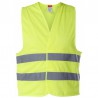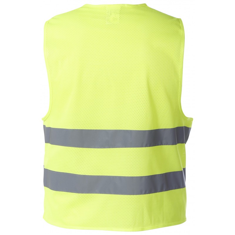Kamizelka siatkowa w kolorze żółtym z pasami odblaskowymi wykonana ze 100% poliestru. Gramatura materiału 120g/m2. Siatkowa struktura materiału zapewnia wysoką przepuszczalność powietrza. Dwa odblaskowe pasy poprawiające widoczność. Kamizelka zapinana na rzepy.