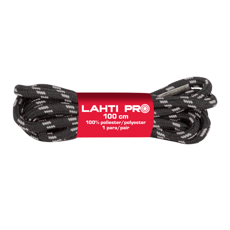 Sznurowadła wyprodukowane ze specjalnie selekcjonowanych włókien poliestrowych o średnicy 4mm. Wzmocnione rdzeniem odpornym na przecieranie oraz zrywanie, charakteryzują się bardzo długą żywotnością. Sznurówki są odporne na wilgoć oraz ciężkie warunki w kolorze czarno-czerwonym o długości 100 cm. Pakowane są w opakowaniu zbiorczym po 10 par.