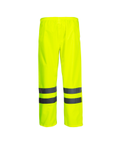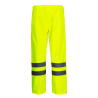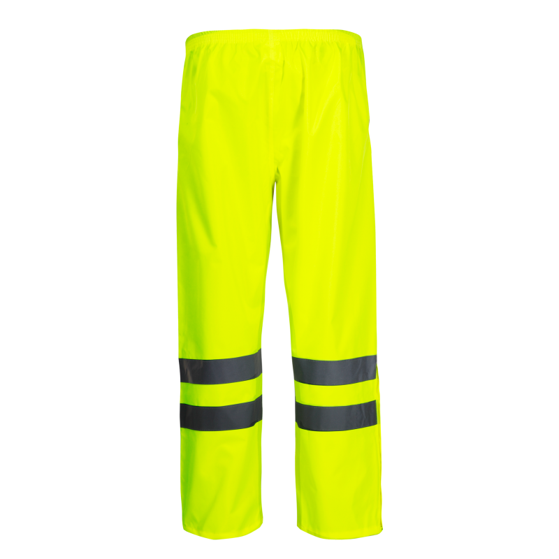 Spodnie wykonano z wysokiej jakości materiału wodoodpornego (2000 mm) 100% poliestru typu Oxford 300D pokrytego poliuretanem (PU), zapewniający wysoki komfort użytkowania. Wysokiej widzialności pasy odblaskowe zgodne z normą EN ISO 20471 w połączeniu z materiałem ostrzegawczym zapewniają wysoką klasę widzialności: klasa 2. Wodoszczelne szwy. Regulacja szerokości w pasie za pomocą ściągacza oraz regulacja szerokości nogawek za pomocą suwaka. Dwa otwory boczne umożliwiające dostęp do kieszeni własnych spodni. Odzież posiada certyfikat na zgodność z najnowszą normą ostrzegawczą EN ISO 20471 wydany przez Centralny Instytut Ochrony Pracy (CIOP). Spodnie posiadają certyfikat CE oraz są w drugiej kategorii środków ochrony indywidualnej.